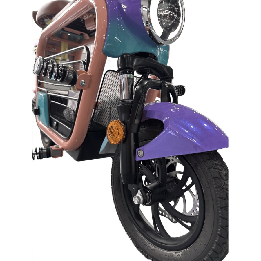 Электроскутер оборудован мощным электрическим двигателем, который обеспечивает быстрое и плавное движение на дороге. Он также оснащен большими колесами для увеличения устойчивости и комфорта во время поездок.