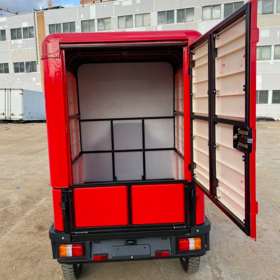 Грузовой электрический трицикл - это электрическое транспортное средство, предназначенное для перевозки грузов. Он имеет три колеса и оснащен электрическим двигателем, что делает его экологичным и эффективным средством доставки в городских условиях.Грузовые электрические трициклы часто используют в городах для доставки товаров на короткие и средние расстояния. Они оснащены специальными боксами, предназначенными для перевозки грузов различного размера и объема. Эти трициклы обычно являются более экологичными и эффективными, чем традиционные бензиновые или дизельные грузовики, так как они не выбрасывают вредные газы в атмосферу.Также грузовой трицикл не нужно регистрировать в ГИБДД