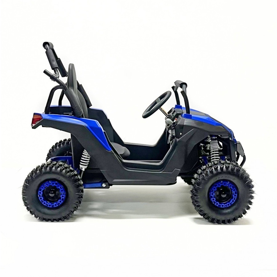 - Мощный электро двигатель 1200W: Багги оснащен новым электрическим двигателем мощностью 1200W, что обеспечивает отличную динамику, высокую скорость и превосходную проходимость на различных типах местности.