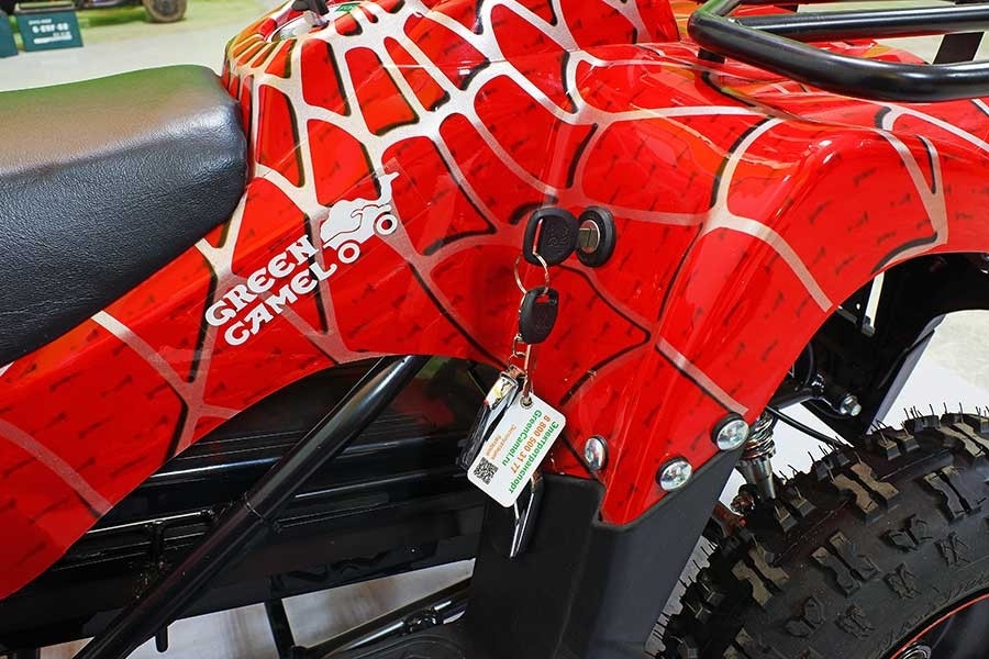 Премиальный детский квадроцикл с богатой комплектацией не оставит без внимания родителей и детей. С быстросъёмным корпусом батареи квадроцикл можно оставлять в гараже, фойе многоквартирного дома или под навесом на территории, а домой на зарядку заносить только батарею для всесезонного использования. Выпавший из поля зрения родителей квадроцикл легко обнаружить с помощью пульта-брелока сигнализации, а также контролировать работу двигателя на расстоянии.