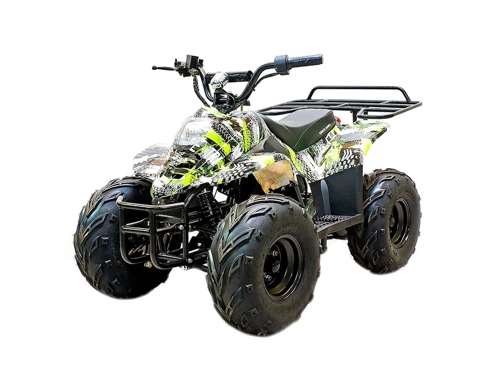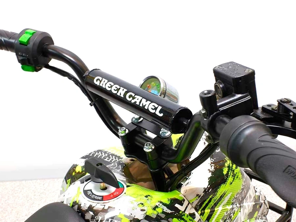Среднеразмерный детский квадроцикл Гоби K51 отличается от модели K50 наличием заднего багажника и ножным гидравлическим тормозом задних колес. Шире база и колёса большего радиуса позволяют с комфортом размещаться детям до 10 лет. Быстрый и тихий электрический квадроцикл GreenCamel Гоби K51 развивает скорость до 30 км/ч при максимальной загрузке в 90 кг. Ручка родительского контроля в трёх значениях L-N-H (Низкий - Нормальный - Высокий уровень). На руле расположены основные органы управления: ручка газа, рычаг тормоза, кнопки заднего хода R и включения головного света, спидометр с индикатором заряда. Безопасные остановки на квадроцикле гарантированы гидравлическими дисковыми тормозами (передний на руле и задний - ножной). С быстросъёмной батареей вы можете оставлять квадроцикл на хранение в фойе многоквартирного дома, в гараже или под навесом на территории, и заряжать батарею дома, обеспечивая всесезонное использование квадроцикла.