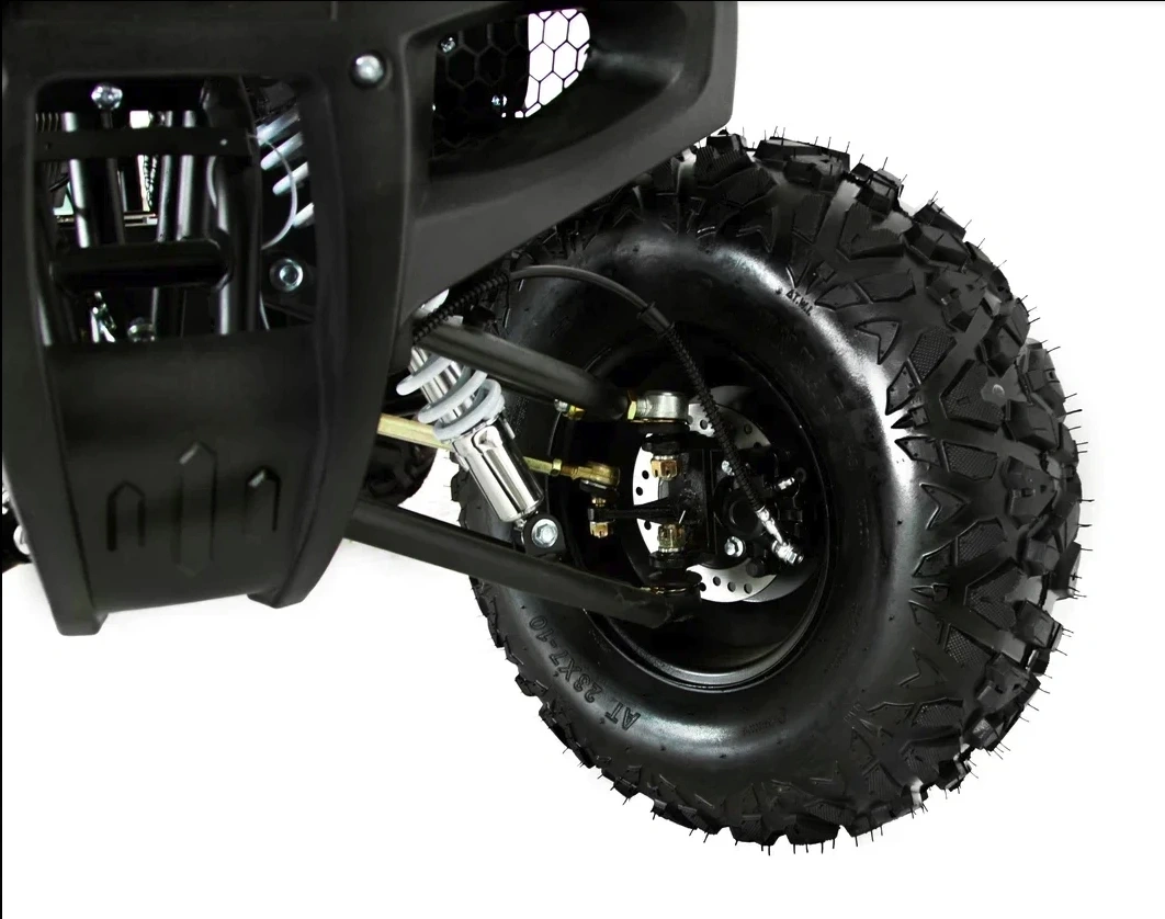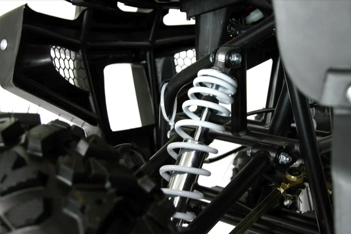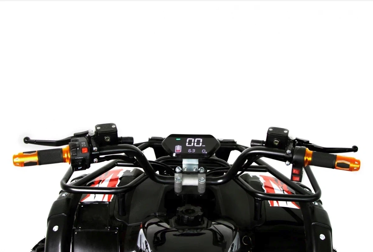 IKINGI Raider 60V 3000W – электроквадроцикл для активного отдыха и прогулок всей семьей. Предназначен для подростков и взрослых ростом до 180 см. Прочная металлическая рама рассчитана на максимальную нагрузку до 200 кг. Комфортное передвижение по бездорожью обеспечивает двойная пружинная амортизационная подвеска, а четкое торможения – дисковые гидравлические тормоза спереди и сзади.
