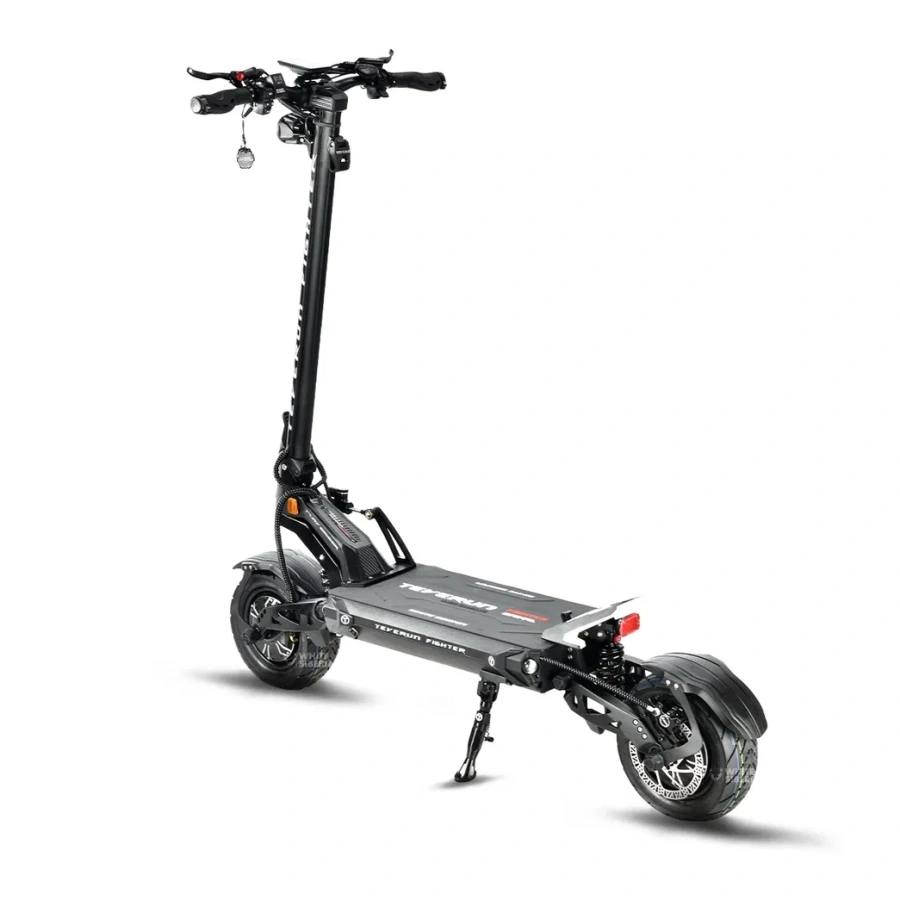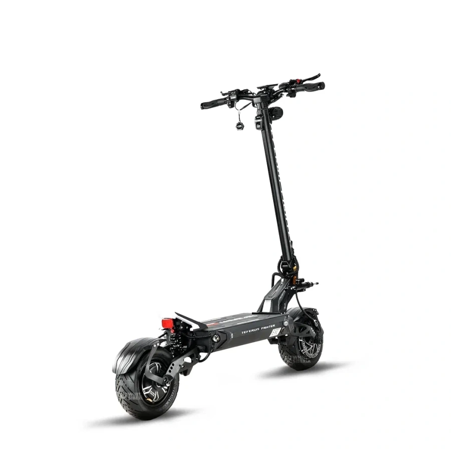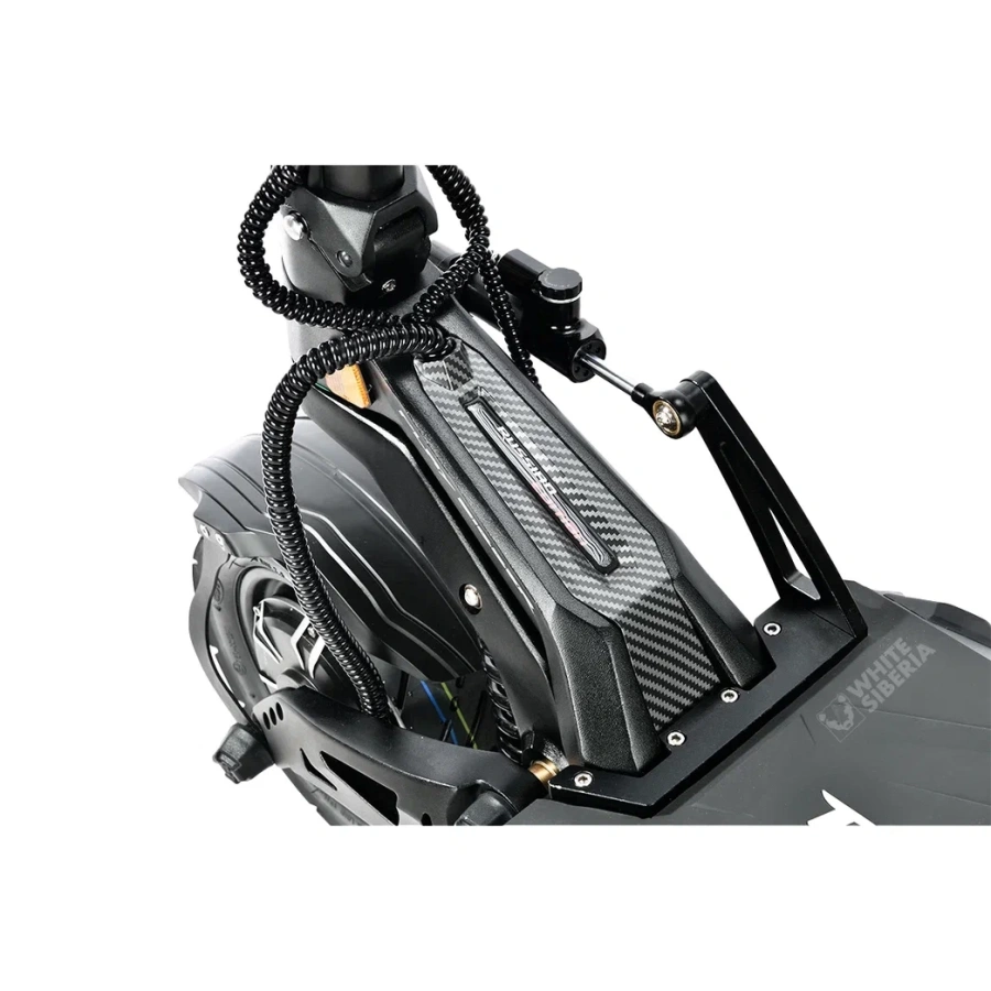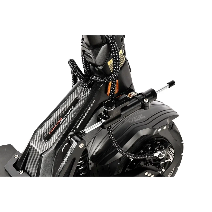 Основным двигателем этого электросамоката являются два мотор-колеса мощностью по 4500 Вт каждый, то есть общей мощностью 9000 Вт. Такая высокая мощность двигателя электросамоката позволяет быстро разгоняться и подниматься по склонам, в то же время обеспечивая плавное и комфортное движение на бездорожье и даже в гористой местности.