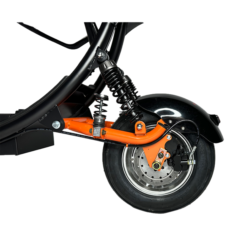 Двигатель мощностью 1000 Вт: Скутер способен разгоняться до максимальной скорости 50 км/ч, обеспечивая быстрое перемещение по городским улицам и тротуарам. Мощный мотор позволяет легко преодолевать подъемы и препятствия.