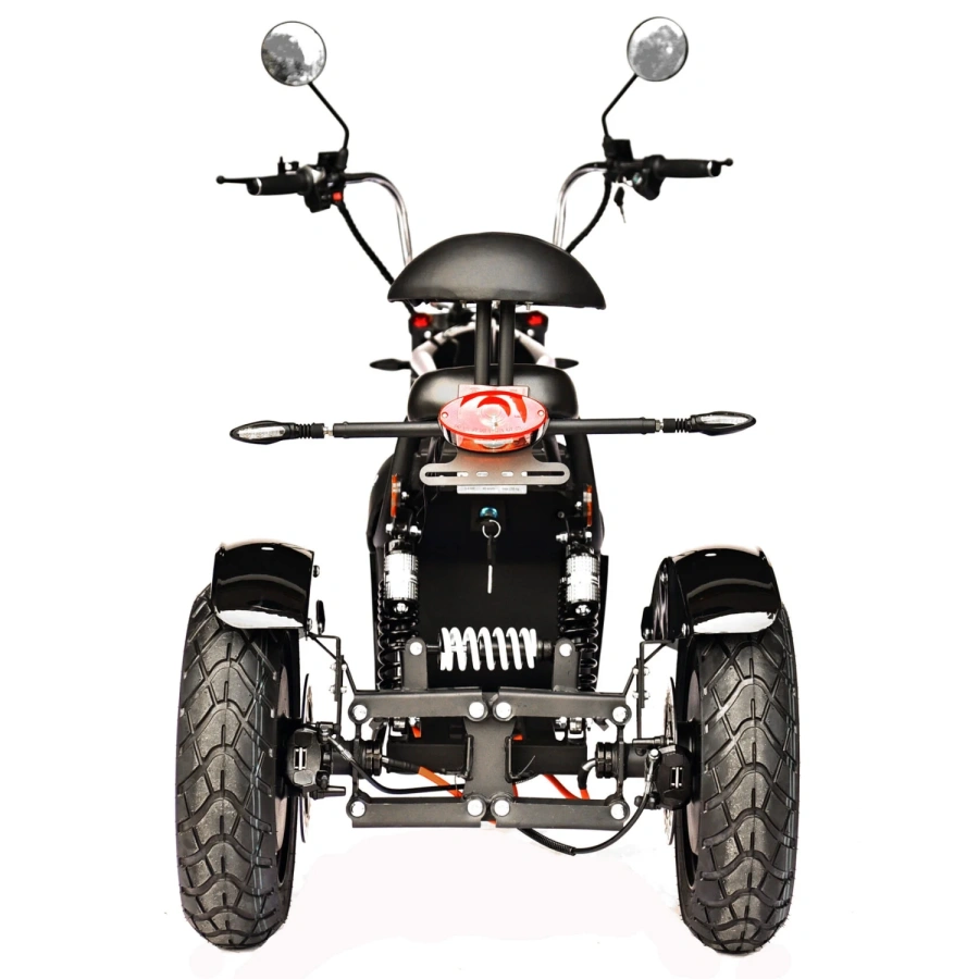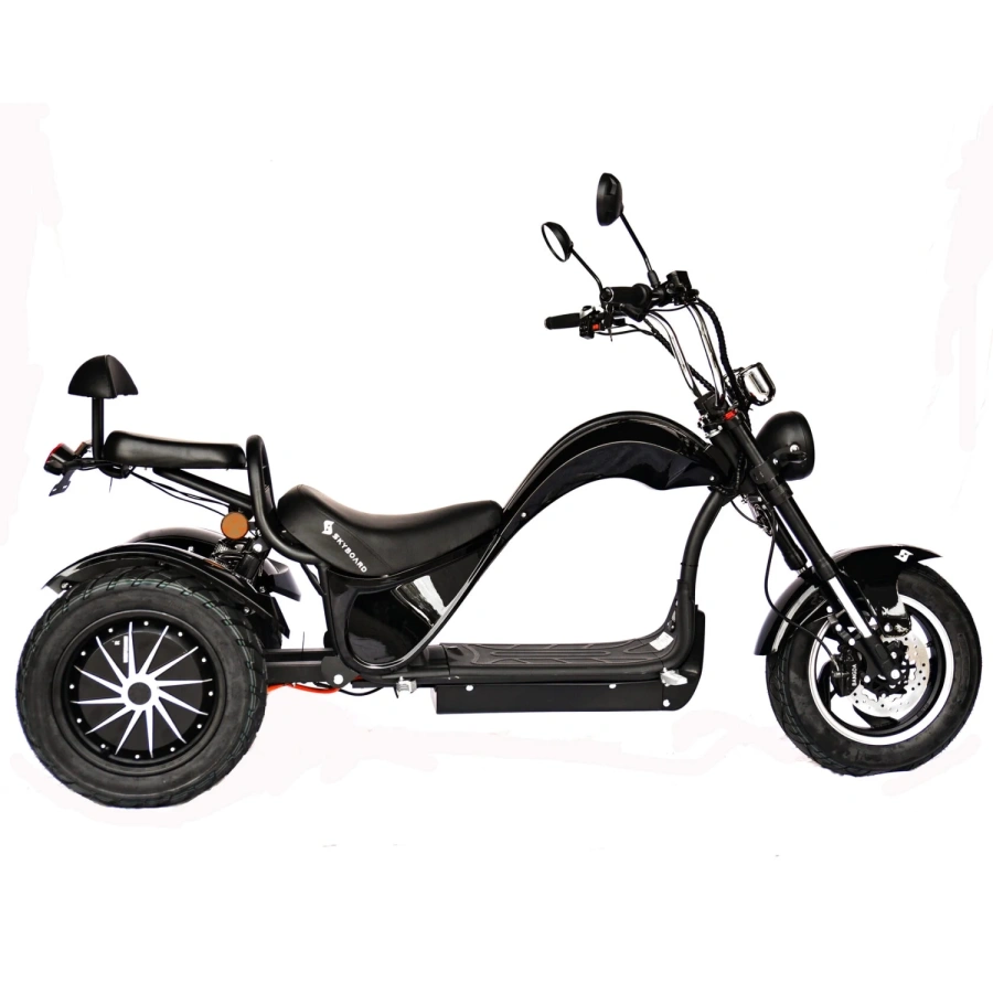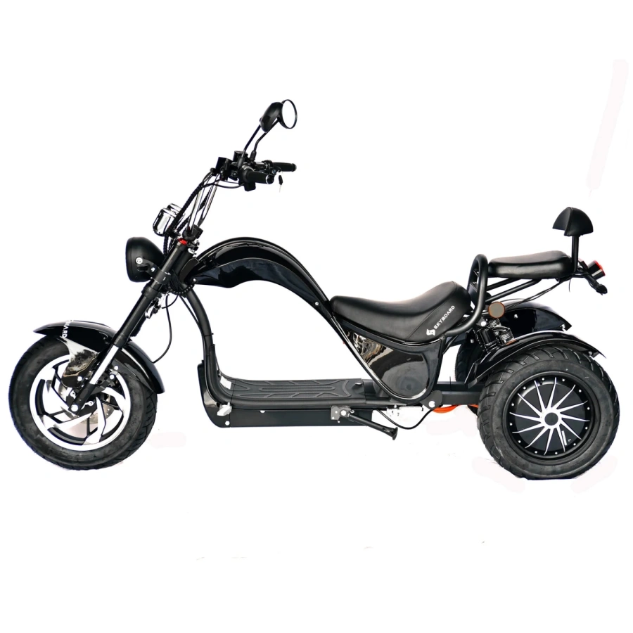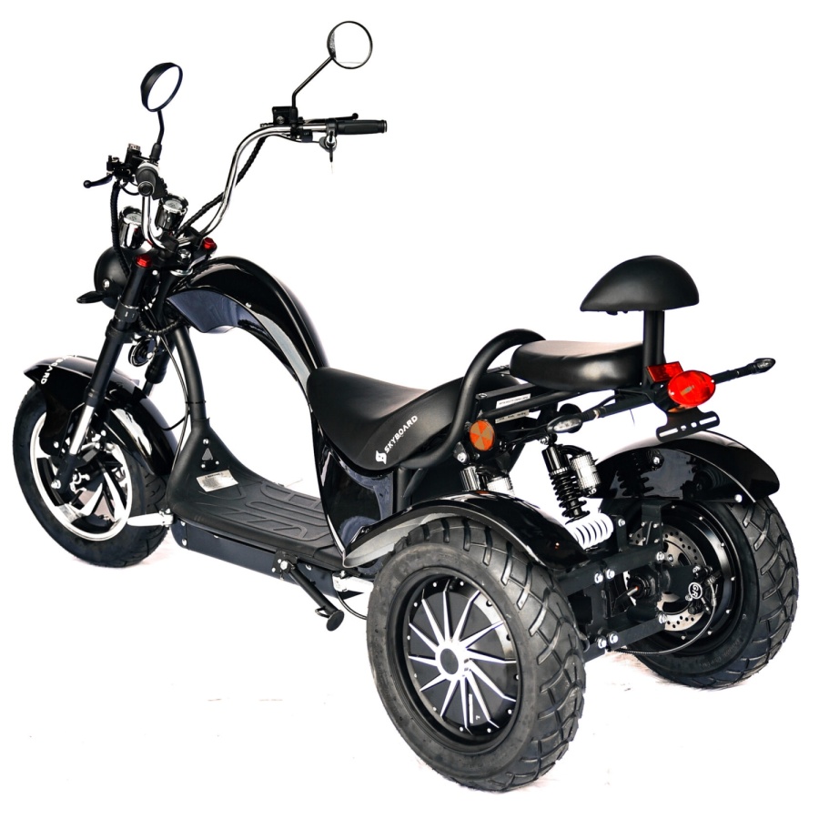 Электроскутер Skyboard Elbrus Chopper 4000W - это красиво оформленный трехколесный электроскутер, который был разработан для комфортной езды в городских условиях и за его пределами. Он имеет стильный дизайн с хромированной отделкой и удобным сиденьем.