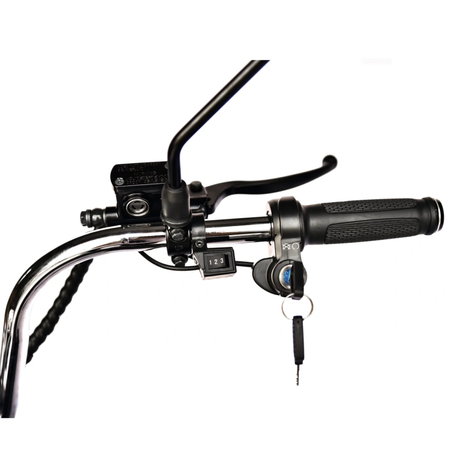 ЭлектроЧоппер оборудован мощным электрическим двигателем, который обеспечивает быстрое и плавное движение на дороге. Он также оснащен большими колесами для увеличения устойчивости и комфорта во время поездок.
