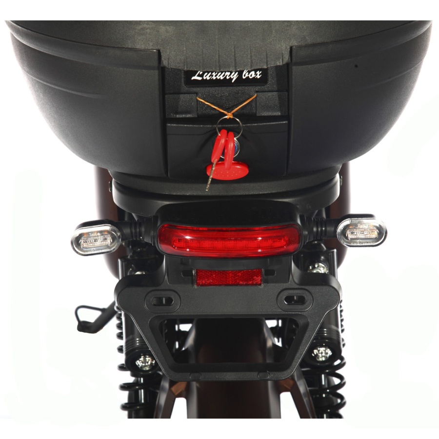 Электроскутер Skyboard Kazbek 1200W (АКБ Li-ion 48V30Ah) - это красиво оформленный трехколесный электроскутер, который был разработан для комфортной езды в городских условиях и за его пределами. Он имеет стильный дизайн с хромированной отделкой и удобным сиденьем.