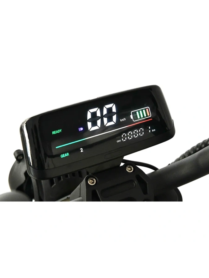 Аккумулятор: Аккумуляторная батарея ёмкостью 60 V / 21 Ah гарантирует большой запас хода до 80 км на одном заряде, обеспечивая длительные поездки без частых остановок на зарядку.