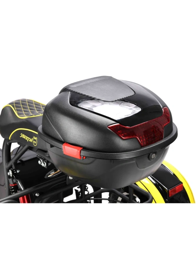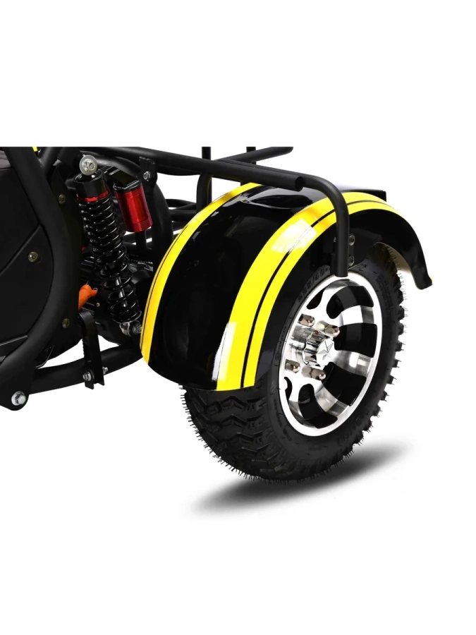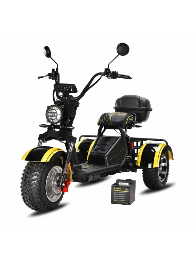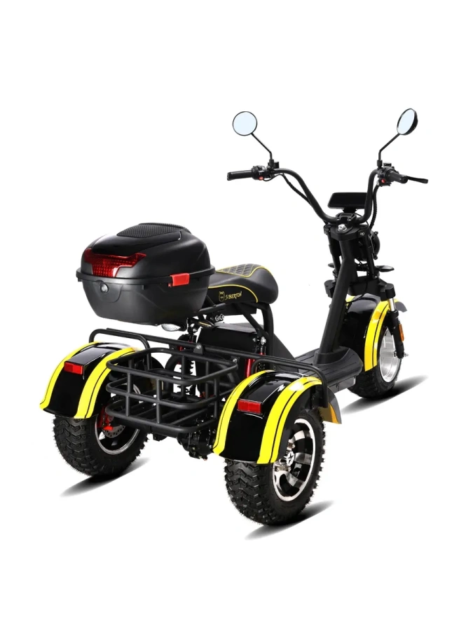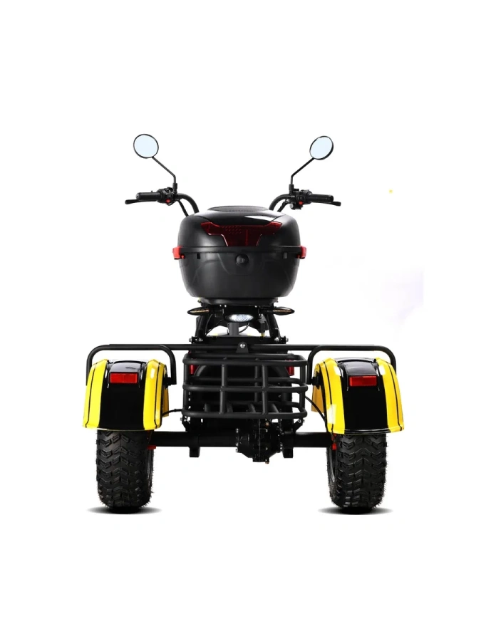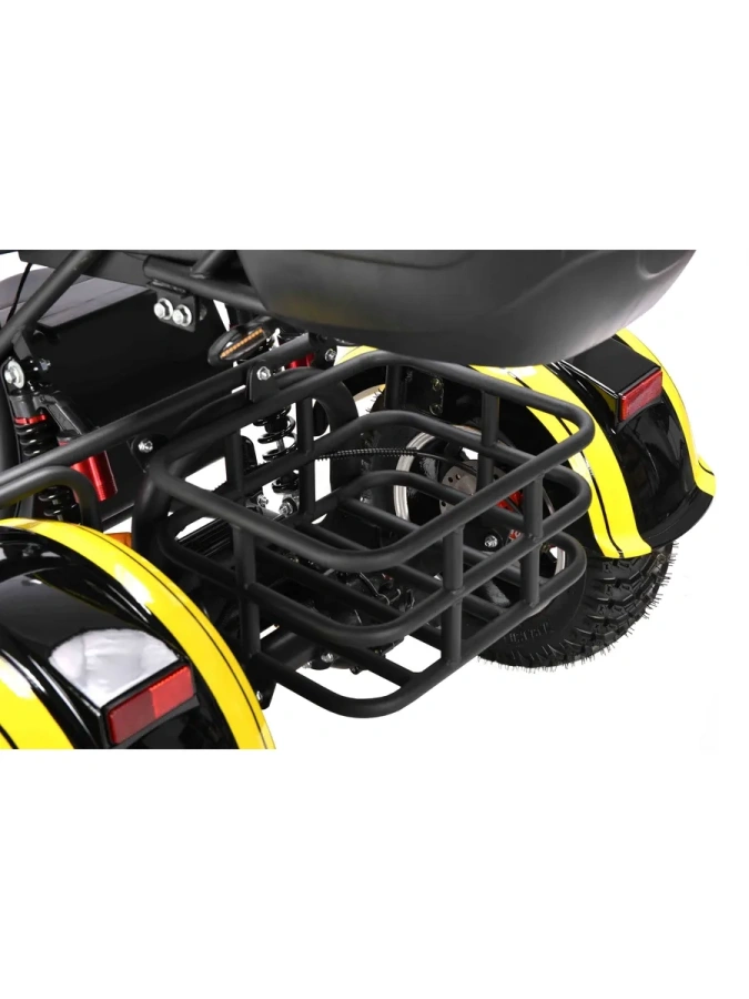 Корпус: Прочный стальной каркас корпуса, усиленные крылья и подножки позволяют перевозить груз массой до 200 кг, делая трицикл идеальным решением для путешествий и хозяйственных нужд.
