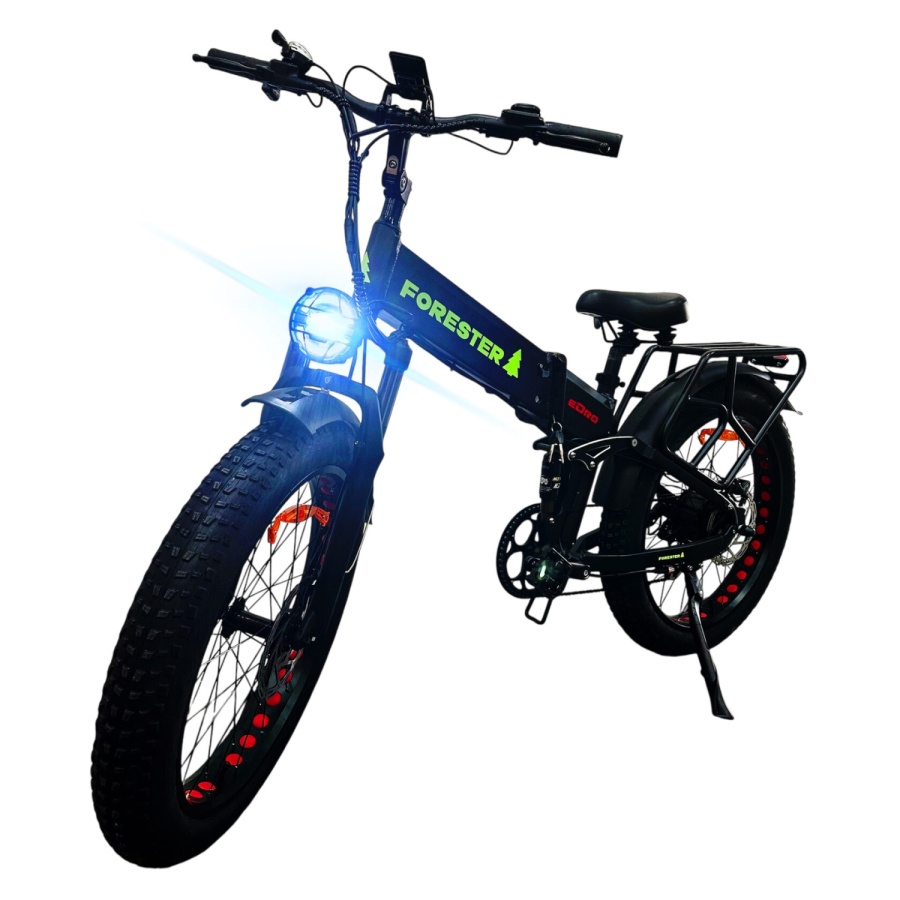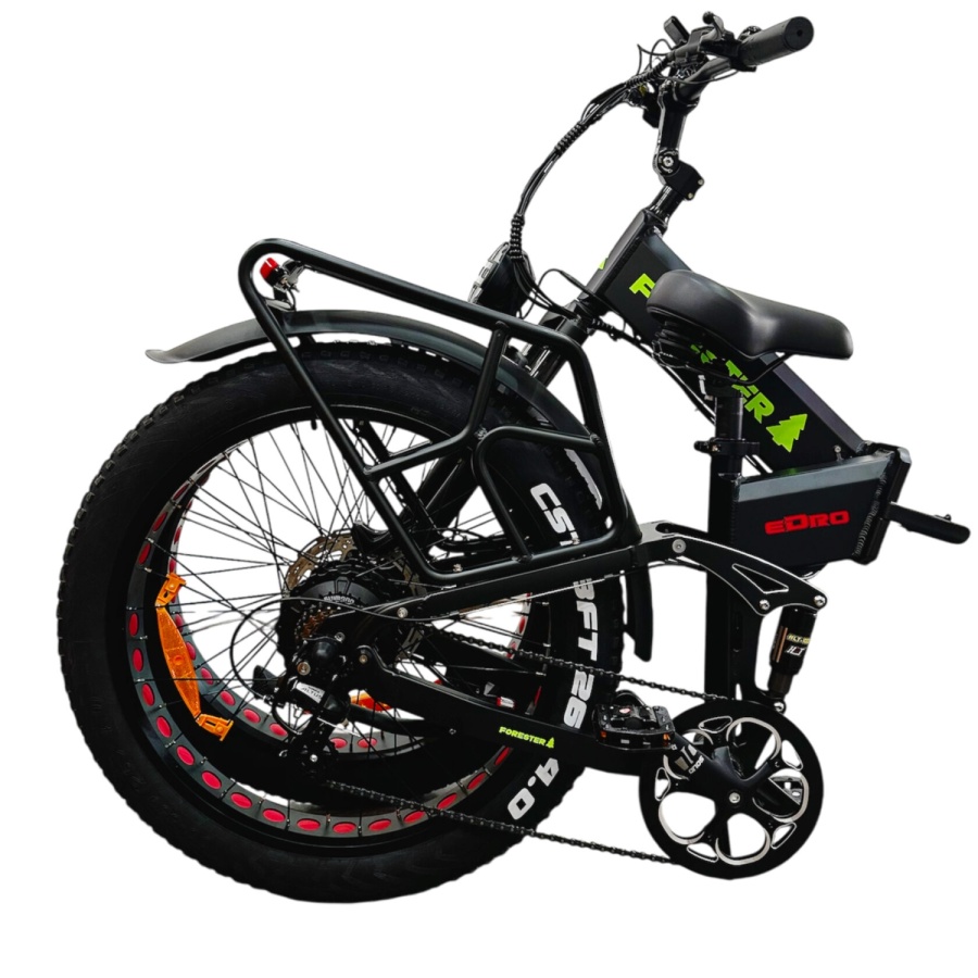 Электрофетбайк eDro Forester черный - это надежный и удобный транспорт для любителей активного отдыха. Он оснащен мощным мотором, который позволяет развивать скорость до 55 километров в час и преодолевать расстояния до 80 километров на одном заряде.