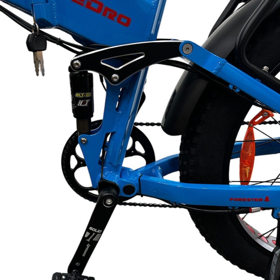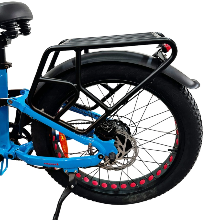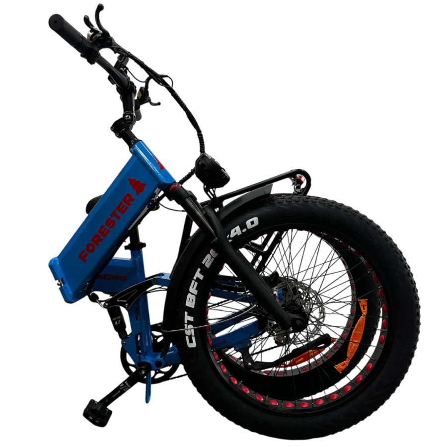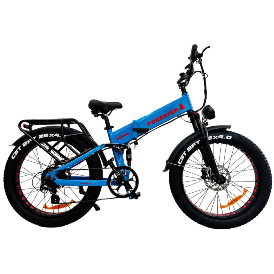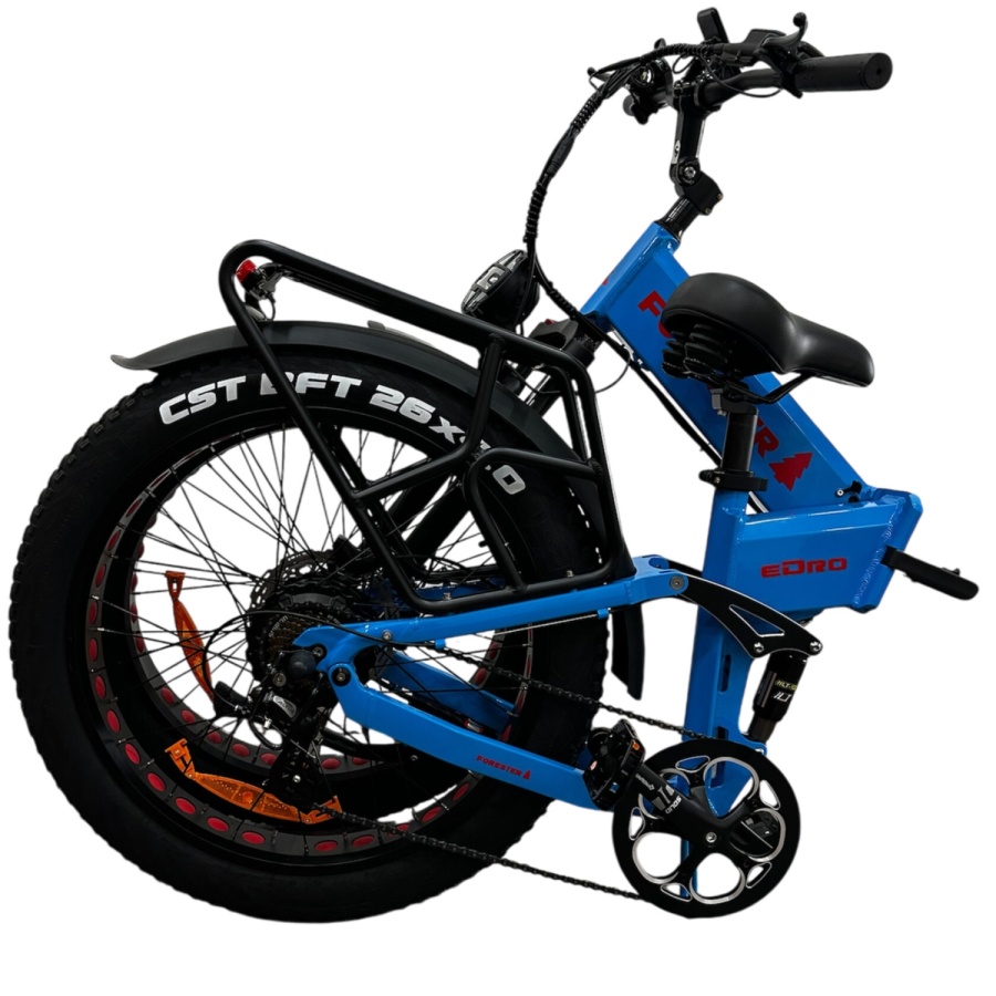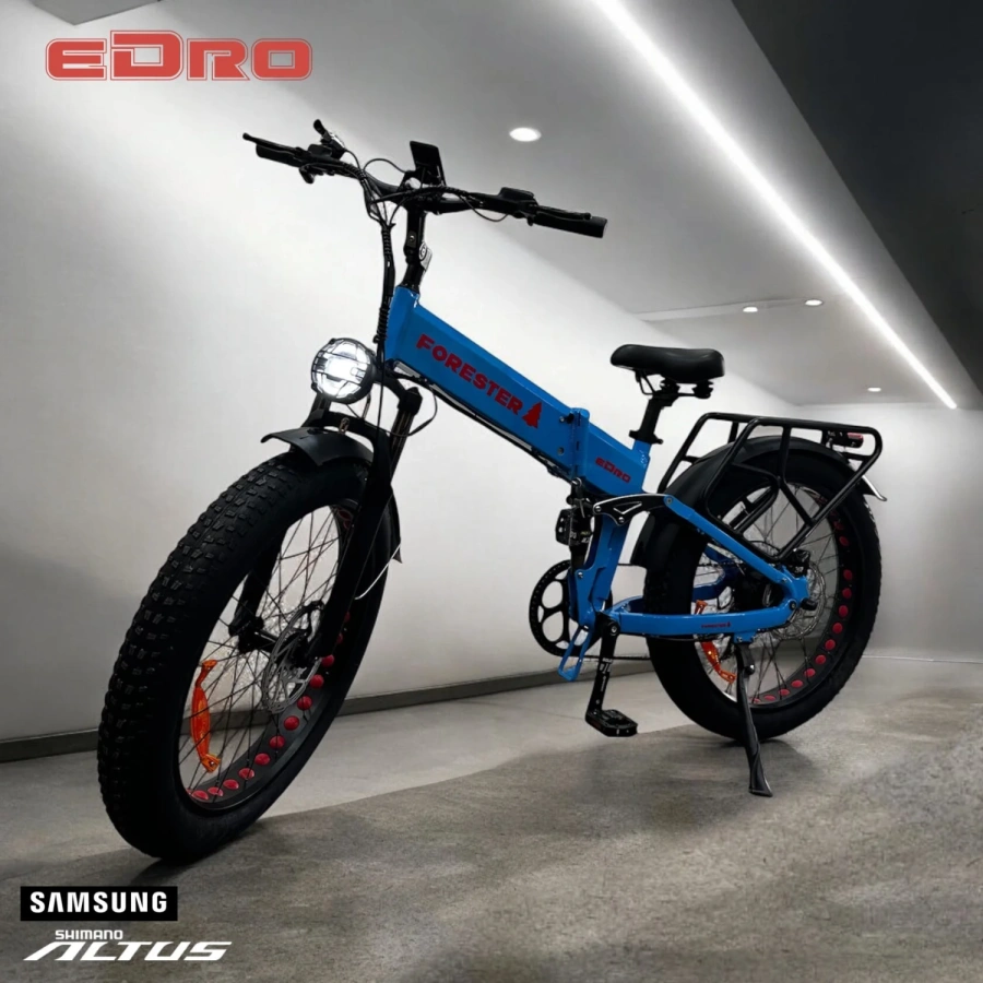 eDro Forester складной электро велосипед на 26 колесах - создан для взрослых людей. На данном электровелосипеде можно преодолеть с легкостью и комфортом 80 км. пути. Предназначен велосипед eDro Forester для универсального использования, лес-парк его стихия, песок и щебень преодолевается с максимальной легкостью, на асфальте и горной местности тесты показали достойные результаты. Таким образом мы имеем складной электрофетбайк сделанный из алюминиевого сплава, который не занимает много места для хранения или транспортировки и имеет внушительный запас дальности при максимальной скорости 55 км/ч. Быстросъемный Литий -ионный аккумулятор (Li-ion) собранная на элементах 21700 от компании Samsung заряжается от 0 до 100% менее чем за 7 часов ( зарядное устройство 3 амера с вентилятором охлаждения ). Быстросъемный аккумулятор позволяет заряжаться в дали от самого велосипеда, вторым плюсом является хранение в теплом помещении, когда сам велосипед может быть оставлен в не отаплиевом сарае или гараже в зимнее время года. Если вам не хватает дальности пробега на одном аккумуляторе, в продаже имеется дополнительный аккумулятор, который вставляется в штатное место велосипеда ( приобретается отдельно ).