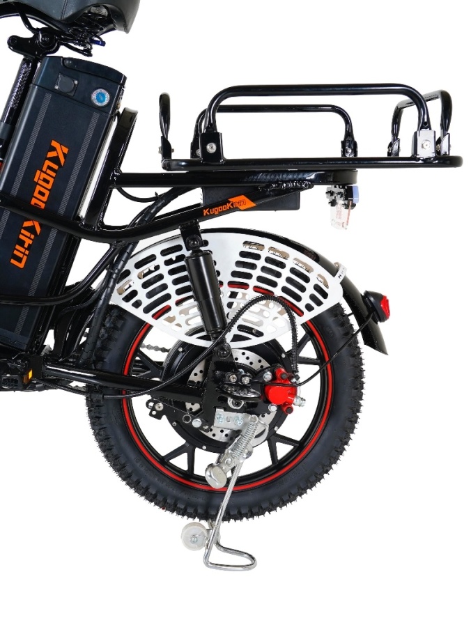 Kugoo Kirin V3 Max - это электровелосипед, который может использоваться в качестве средства доставки. Он имеет максимальную скорость 45 км/ч и запас хода до 40 км. Грузоподъемность составляет 100 кг, что достаточно для большинства курьеров. Степень защиты IP54 означает, что велосипед устойчив к брызгам воды. Вес устройства составляет 41.7 кг, что позволяет сохранять устойчивость на дороге. На задней части устройства расположено дополнительное сиденье предназначенное для перевозки пасажира.