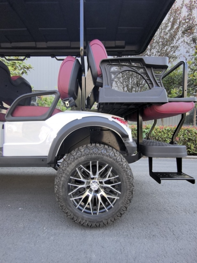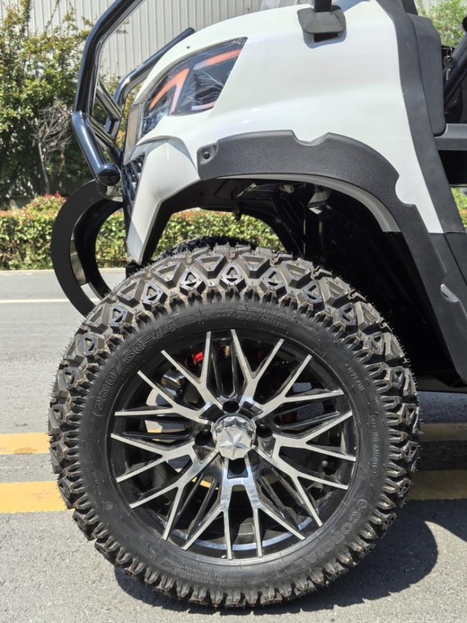 - Колеса: Литые диски R14 не только придают гольфкару стильный внешний вид, но и обеспечивают отличную управляемость и устойчивость на дороге.