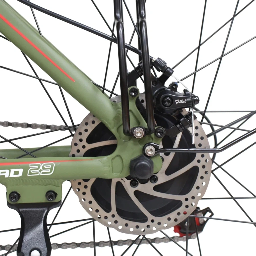 Дисковые механические тормоза спереди и сзади - просты и надёжны. В случае поломки - легко починить и вернуться в цивилизацию!