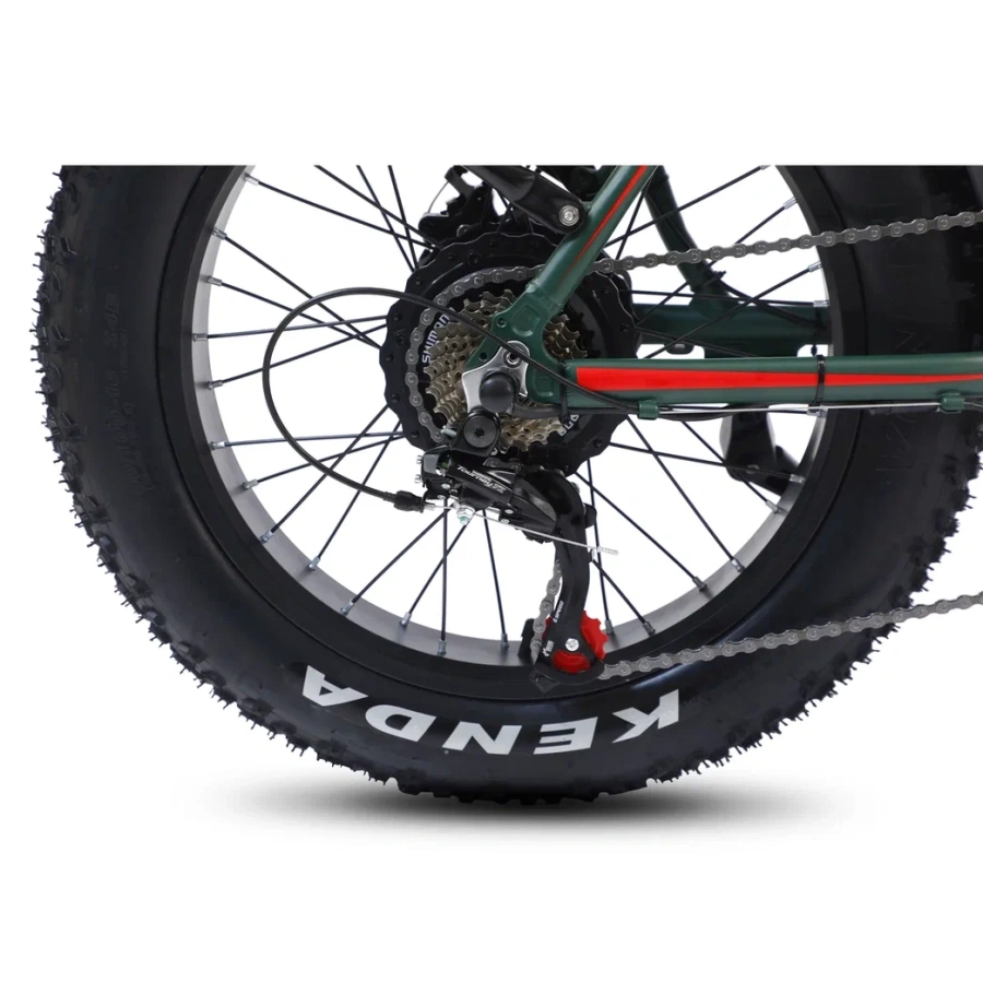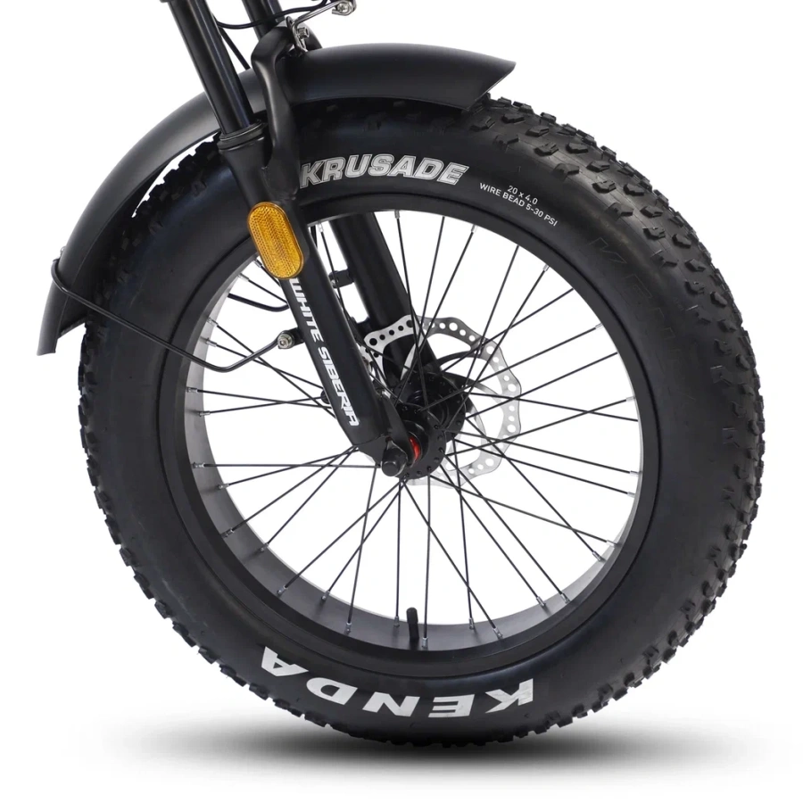 Колёса на 20 дюймов и шириной 4.0 - отличное соотношение манёвренности и проходимости! А благодаря резине Kenda с универсальным рисунком протектора - ещё и отличное сцепление с различными типами дорожных покрытий. Широкая резина лучше преодолевает различные препятствия - бордюры, корни деревьев, камни. В сочетании с регулируемой амортизационной вилкой - получается универсальный, устойчивый фет-байк.