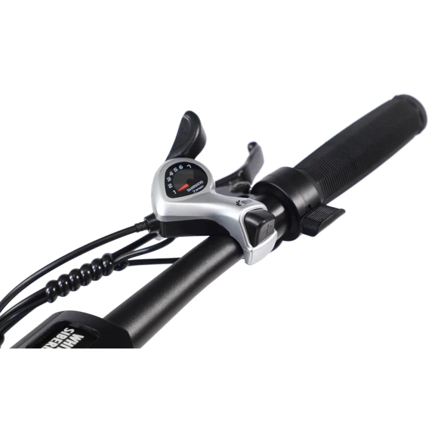 Качественное навесное оборудование от фирмы SHIMANO, большой дисплей бортового компьютера с подсветкой, удобный лепесток газа, усиленный металлический багажник, передняя корзинка - всё это для вашего комфортного передвижения на мягком сидении электровелосипеда SLAV PRO 1000W.
